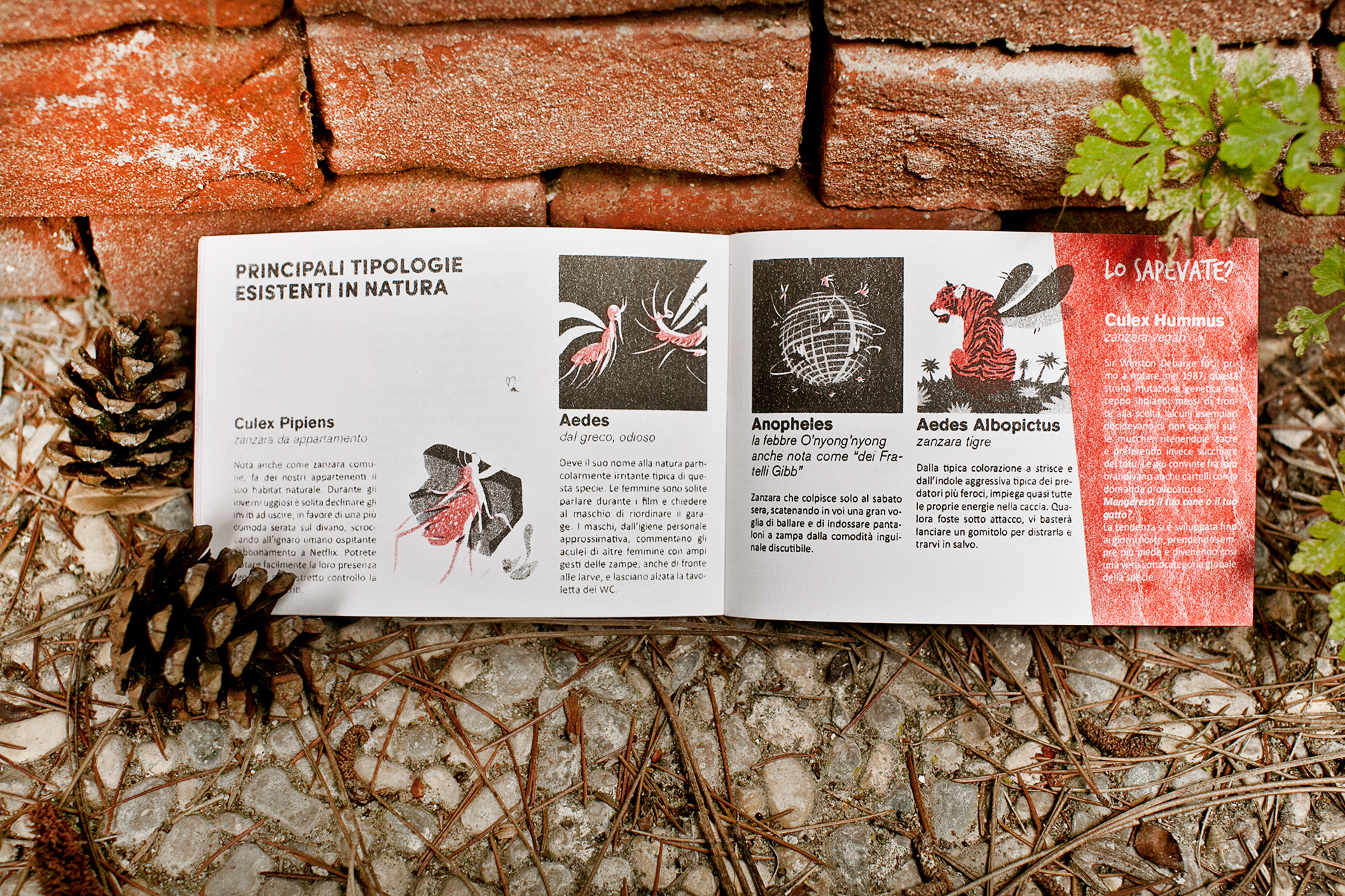 Zanzine è uno spillato, pensato per l’estate, dedicato alle zanzare. Composto da testi e immagini inedite realizzate ad otto mani, dal gusto nonsense umoristico, in un susseguirsi di approfondimenti storico-scientifici, metodi antizanzare e dottrine zen.